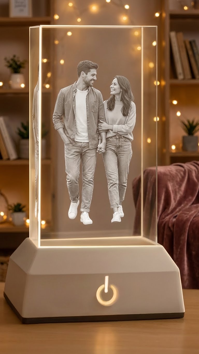 Cadeau Mémorable en Cristal 3D - Immortalisez vos moments précieux!